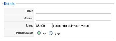 - Published – click Yes radio button; this will make possible to show the poll on the site.