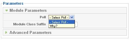 A page for Poll module editing will be opened. Within the Parameters (Module Parameters) area, select a poll from the Poll list: