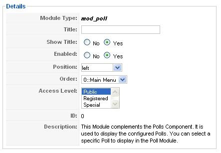 Joomla standard installation includes Poll module which allows you to create different polls on the pages of your site. This article will describe in details how you can create and place a poll using this module.