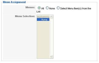 - Select Menu Item(s) from the list – if you wish to select a page or a set of pages to display this module. For this case, you should then select the necessary menu item(s) from Menu Selection list. Use <CTRL> keyboard key for multiply selection.