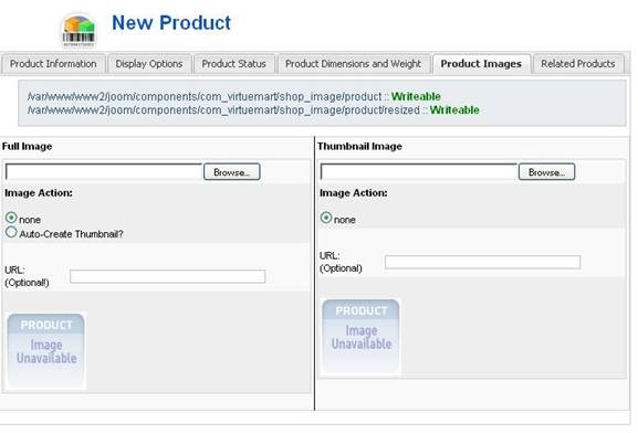8. When we have entered this info, we proceed to the Product Images. To add an image of the product we select the browse button beside the Full Image input box: